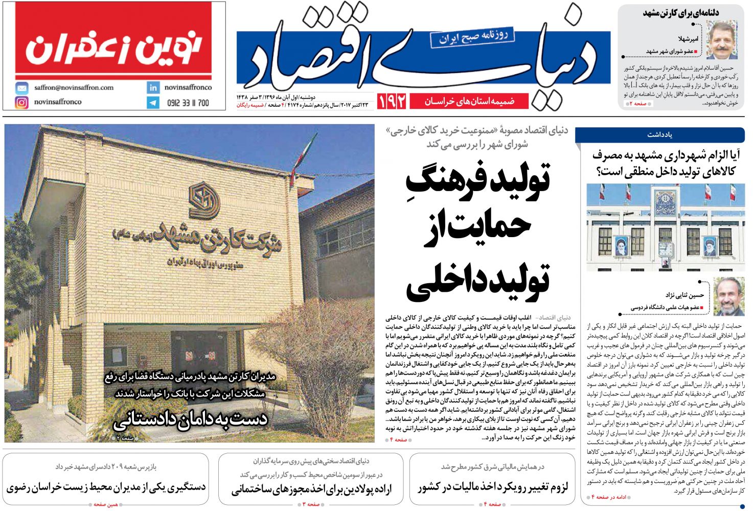 شماره 193، ضمیمه استانهای خراسان، دوشنبه 8 آبان 96