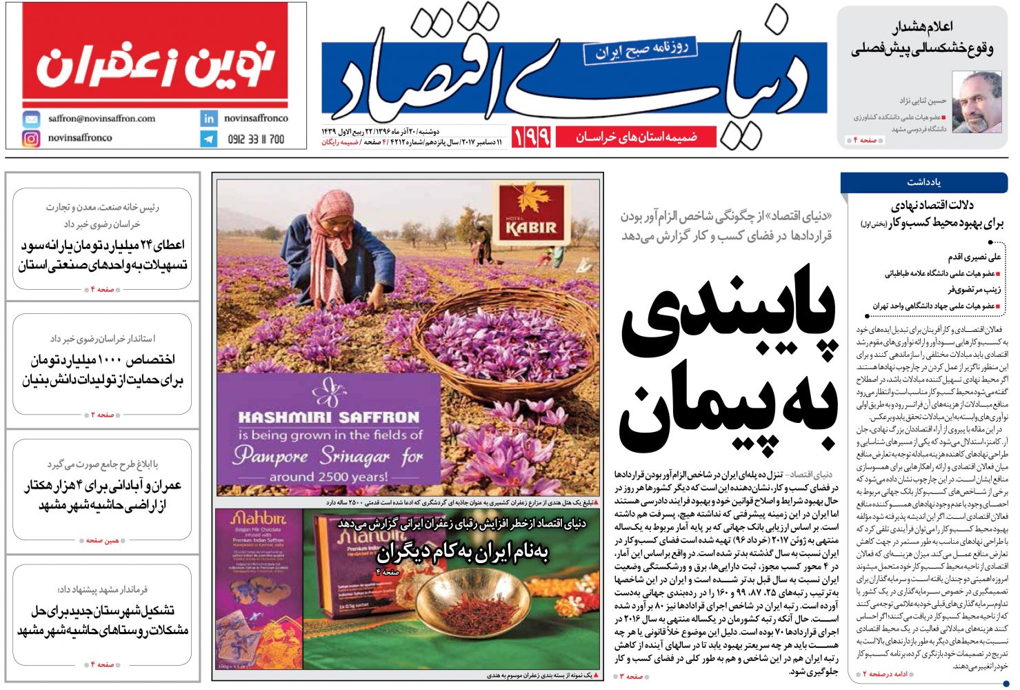 شماره 198، ضمیمه استانهای خراسان، دوشنبه 13 آذر 96