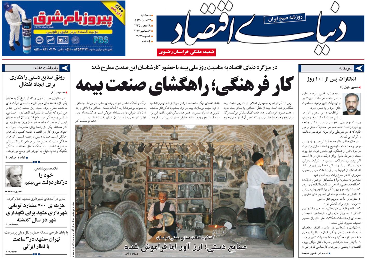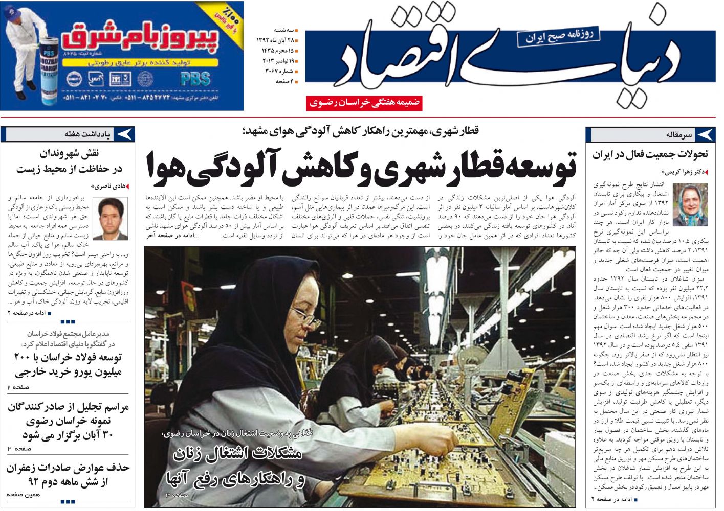 برای دریافت این شماره اینجا کلیک کنید ویژه آسیب شناسی اقتصادی آلودگی هوای مشهد بهمن 1403