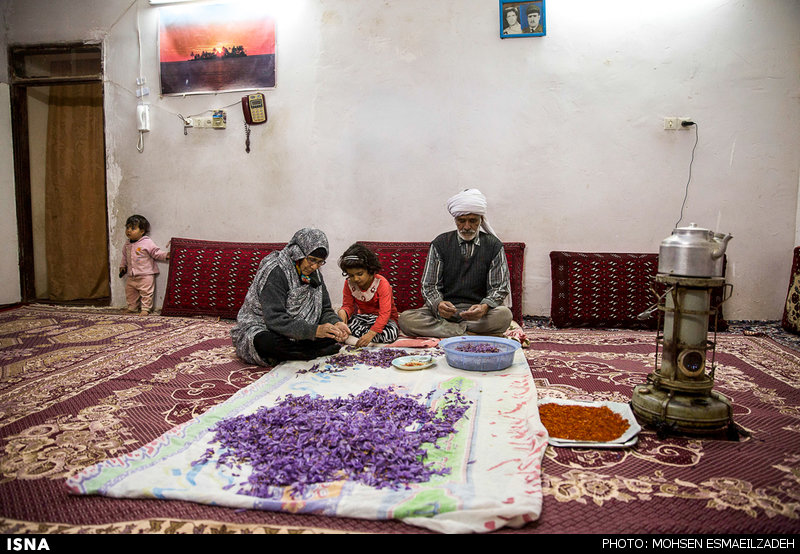 در شهرستانهای خراسان رضوی، در خانههای بزرگ و کوچک و خانوادههای کم جمعیت و پرجمعیت همیشه از این بساطها دیده میشود. زعفران جمع شده است. همه در گوشهای از خانه نشستهاند و پاک میکنند. زن و مرد نمی شناسد. همه باید کمک کنند.