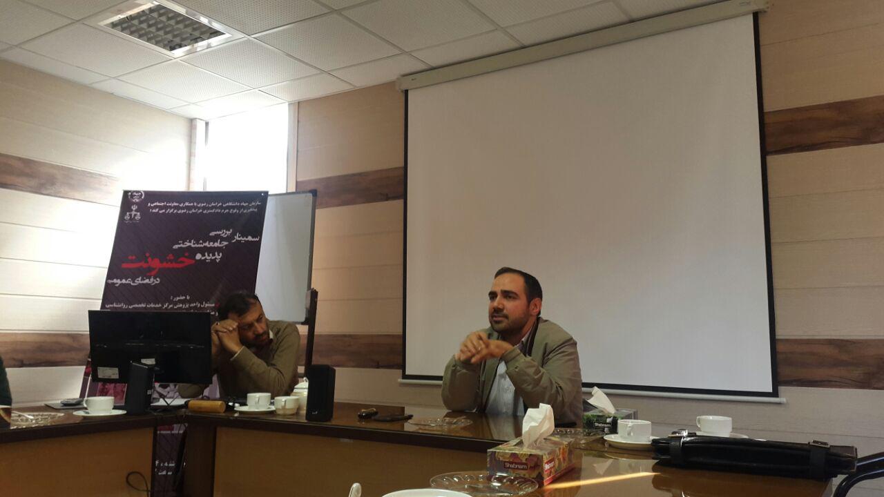 خشونت در معنای لغوی که مورد اتفاقنظر کارشناسان قرار گرفته، استفاده عامدانه از نیروی جسمی و یا قدرت اعمالنظر برخلاف میل طرف مقابل است. امروزه خشونت بهعنوان یک معضل اجتماعی درجامعه اهمیت پیدا کرده و آنچه نباید از یاد برد، این است که این پدیده منحصر به مشهد، استان خراسان و یا ایران نیست، خشونت یک پدیده جهانی است و روانشناسان اولین راهحل برای مقابله با این معضل فردی و اجتماعی را آگاهی میدانند. هفته گذشته در پژوهشکده گردشگری جهاد دانشگاهی مشهد سمیناری تحتعنوان «بررسی جامعهشناختی پدیده خشونت در فضای عمومی» برگزار شد. در این سمینار، محمدحسن اشرف، روانشناس و مجید دانایی، پژوهشگر مسائل اجتماعی ابتدا با تعریف خشونت و ریشهیابی آن به تحلیل و بررسی دلایل جامعهشناختی خشونت پرداخته و سپس راهکارهای مقابله با آن را عنوان کردند و درنهایت به پرسشهای مدعوین پیرامون بحث مزبور پاسخ دادند.