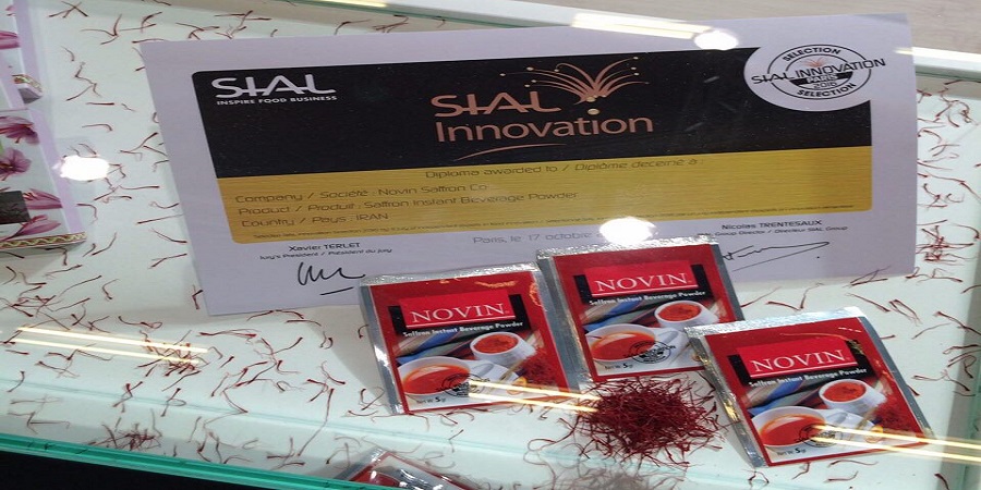شرکت نوین زعفران همزمان با نمایشگاه غذایى سیال فرانسه با ارائه «عصاره نوشیدنى زعفران با برند نوین» موفق به دریافت جایزه و گواهینامه نوآورى از سیال فرانسه شد.