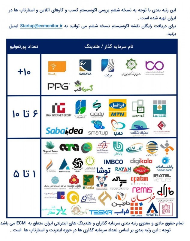 وی ادامه میدهد: بر اساس این گزارش، سرمایهگذاران و هلدینگهای اکوسیستم کسب وکارهای آنلاین و استارت آپها در ایران در سه دسته رتبهبندی شدهاند که یکی از سرمایهگذران بومی استان در جایگاه نخست این رتبهبندی قرار دارد؛ این امر بیانگر توجه جدی بخش خصوصی و سرمایهگذاران و هلدینگهای بومی استان به بازارهای جدید است.