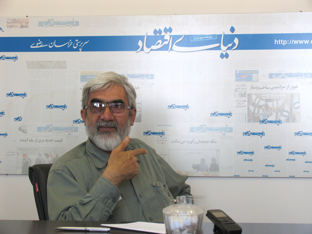 در آن موقع مطلبی با عنوان «کاش میشد احمدآباد را از پاچه تکاند» نوشتم که منظورم این بود کاش می شد به جای آلودگی و ویرانی با خود برای پایین شهر پول می برد و این یادداشت را به روزنامه خراسان تحویل دادم و بعد از چند روز با من تماس گرفتند که برای گفتوگو به روزنامه خراسان بروم. در آنجا صحبتهایی در مورد همکاری با روزنامه انجام دادم که در نهایت همکاری من با خراسان شروع شد. پس از یک سال همکاری پراکنده با خراسان به بنده مسئولیت تحریریه روزنامه خراسان را پیشنهاد دادند که از سال 64 تا 69 سردبیری روزنامه را بر عهده داشتم. در آن سالها روزنامه خراسان تحت تاثیر جریان چپ اسلامی و طرفدار دولت وقت بود و همچنین آقای موسویان مدیرمسئول وقت روزنامه خراسان با افراد متفکر مجمع روحانیون مبارز در ارتباط بود. همچنین روزنامه متعلق به بنیاد شهید بود که آقای کروبی رئیس بنیاد شهید بودند و انصافا کمکهای خوبی به روزنامه میکردند.