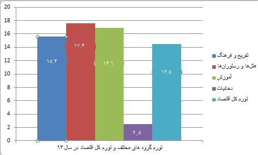 متاسفانه برای بررسی دقیق جامعه ایران اطلاعات چندانی در دست نیست اما بیایید با نگاهی کلانتر و با کمی چاشنی تقریب به کنکاشهای خود ادامه دهیم. میتوانیم به طور کلی چگونگی گذران اوقات فراغت جامعه ایرانی را به مطالعه کتاب و روزنامه و رفتن به سینما و تئاتر(تفریح و فرهنگ)، گذراندن زمان در کافی شاپها و رستورانها(هتل و رستوران) و کلاسهای آموزشی(آموزش) محدود سازیم. نکته جالب توجه آنجاست که بنا به گزارش مرکز آمار ایران و همانطور که در نمودار زیر میبینیم گروههای تفریح و فرهنگ، هتلها و رستورانها و آموزش که جزیی از سالمترین شیوههای گذران اوقات فراغت هستند با تورمی بیش از تورم کل اقتصاد در سال 93 همراه بودهاند. اما جالب توجه است که تورم دخانیات در سال 93 تنها 2.5 درصد بوده است و صد البته باید اذعان داشت که این گروه از کالاها که شامل سیگار، قلیان و ... میباشد با سهولت بیشتری در اختیار عموم قرار دارد و همین امر سبب میگردد که برای تهیه دخانیات نسبت به سایر گروههای یاد شده، هزینه کمتری صرف شود.