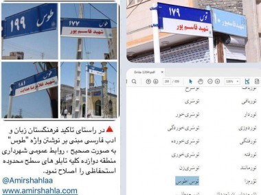 اقتصاد شرق؛ سعید مهرپویا- خبر از جایگزینی تابلوهای «توس» با «طوس» آمده بود. کاری که شهرداری منطقه ۱۲ انجام داده است.