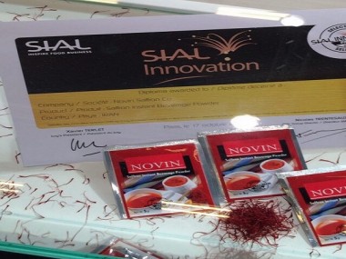 شرکت نوین زعفران همزمان با نمایشگاه غذایى سیال فرانسه با ارائه «عصاره نوشیدنى زعفران با برند نوین» موفق به دریافت جایزه و گواهینامه نوآورى از سیال فرانسه شد.